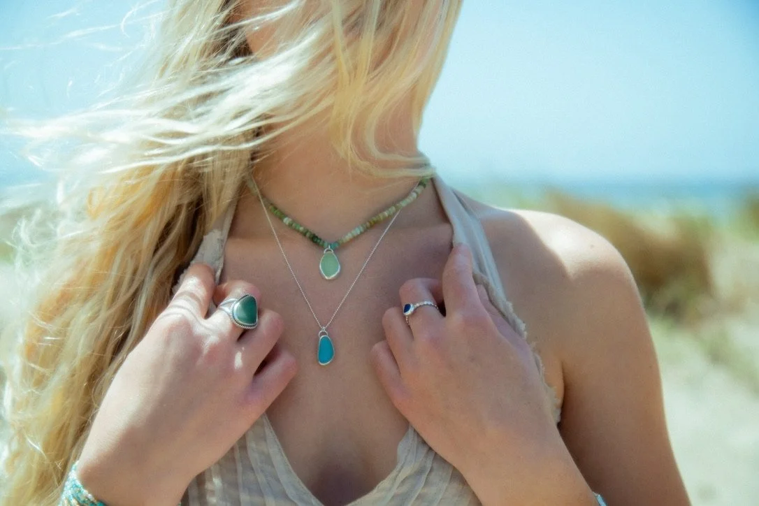 At XOXOBYMO, we invite you to explore and indulge in the rare beauty of our seaglass jewelry collection. Each piece is a testament to the unparalleled charm of the sea, waiting to adorn those who seek to embrace the extraordinary. Discover the allure of seaglass, and make a statement that is as exceptional as you are.